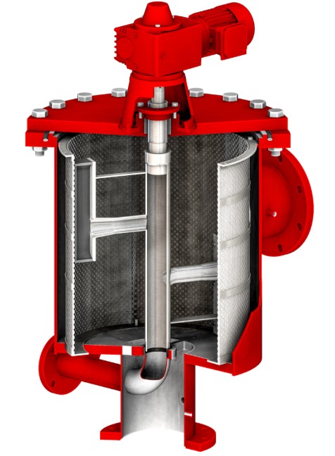 Nước thô đi vào bộ lọc qua mặt bích đầu vào và chảy từ trong ra ngoài qua trống lọc, nơi quá trình lọc bắt đầu.