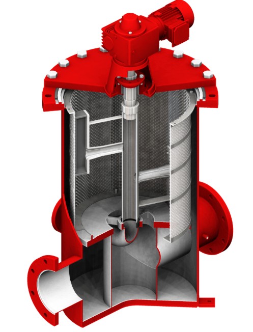 Cánh tay xả quay cùng với các guốc xả gắn liền, đảm bảo làm sạch 100% bề mặt giỏ lọc. Sau 15–20 giây, quá trình rửa ngược kết thúc tự động và van rửa ngược đóng lại.