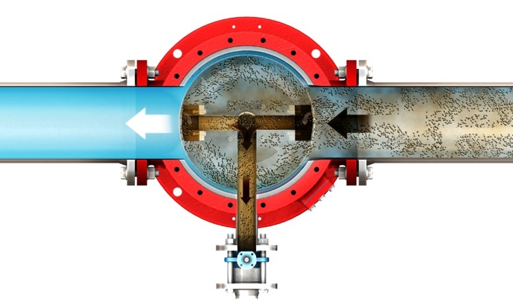 Van rửa ngược điều khiển bằng motor mở ra, tạo áp suất khí quyển trong ống rửa ngược và cánh tay xả. Áp suất dư phía nước sạch sẽ đẩy các chất rắn ra khỏi hệ thống ngược chiều với hướng lọc.