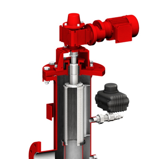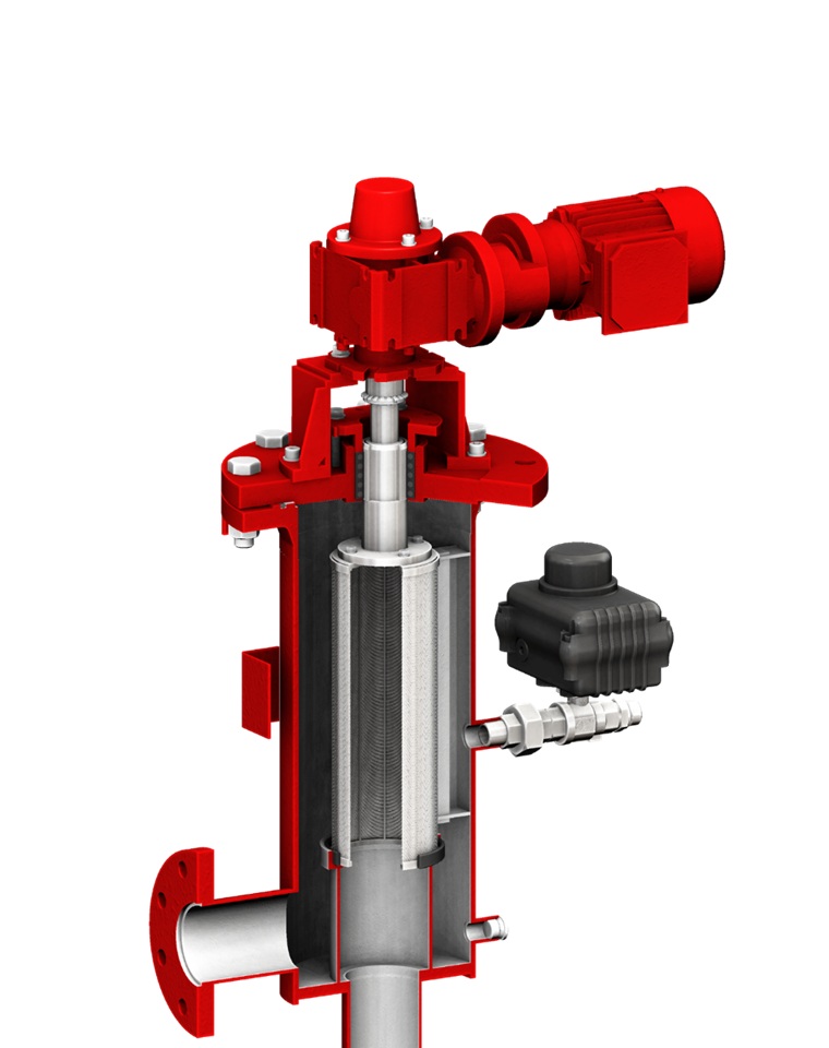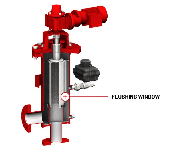 Trong quá trình rửa ngược, phần tử lọc quay ngang qua cửa sổ rửa, loại bỏ hiệu quả các hạt bám lại. Điều này đảm bảo quá trình lọc hiệu quả và không bị gián đoạn.