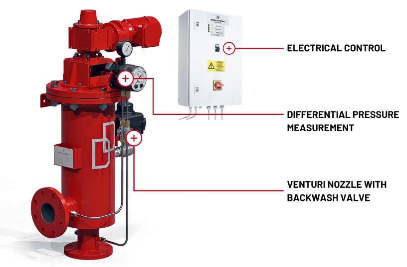 Vòi Venturi được thiết kế thích ứng với điều kiện vận hành, giúp điều chỉnh lượng nước rửa để ngăn chặn biến động áp lực trong mạng đường ống. Nhờ vậy, hệ thống tiết kiệm tới 70% lượng nước rửa, giảm một nửa chi phí xử lý nước thải và bảo vệ môi trường tại điểm sử dụng. Van rửa ngược được trang bị bộ truyền động điện hoặc khí nén tiêu chuẩn, đảm bảo kiểm soát chính xác quá trình rửa.