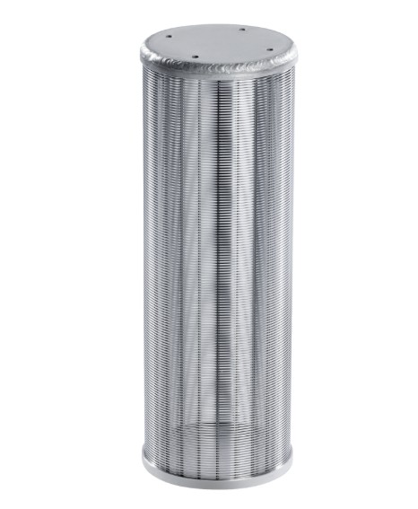 Phần tử lọc được chế tạo từ thép không gỉ bền chắc, giúp tối đa hóa tuổi thọ thiết bị. Lõi lọc gồm một ống hình trụ bằng lưới nêm (wedge-wire screen) quấn quanh trục đỡ. Lưới nêm được hàn từ các thanh tam giác, mang lại độ ổn định cao, có sẵn với nhiều cấp thép không gỉ khác nhau và đạt độ mịn lọc từ 5 µm. Quá trình làm sạch 100% bề mặt lọc giúp duy trì chênh áp ổn định, giảm tiêu thụ năng lượng bơm. Tùy theo điều kiện vận hành và công suất bơm, hệ thống có thể tiết kiệm 10–30% chi phí năng lượng, giảm chi phí vận hành và đóng góp tích cực cho tính bền vững.