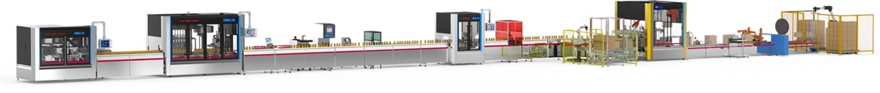Một dây chuyền chiết rót tự động, Automatic filling line hoàn chỉnh tích hợp toàn bộ các công đoạn từ cấp liệu, chiết rót, đóng nắp/niêm phong, dán nhãn đến xếp pallet. Giải pháp này mang lại hiệu suất chiết rót cao hơn, giảm chi phí nhân công và hạn chế hao hụt nguyên liệu.