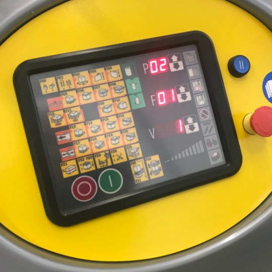 Thiết bị có thể quấn mọi loại pallet với kích thước khác nhau một cách dễ dàng và hiệu quả. Với khả năng điều chỉnh số vòng trên và dưới, thiết bị tự động phát hiện chiều cao pallet nhờ cảm biến tích hợp. Từ đó, robot vận hành êm ái với chức năng khởi động mềm, dừng khẩn cấp khi cần, và tốc độ điều chỉnh linh hoạt. Mọi thông số quấn đều có thể thiết lập trực tiếp từ bảng điều khiển.